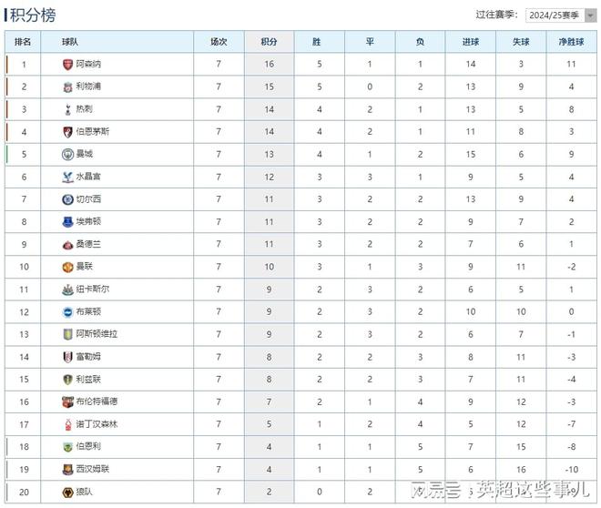 昨晚今晨,英超联赛第7轮全部战罢,曼城客场1-0击败布伦特福德,升至积分榜第5位,哈兰德打进唯一入球,罗德里因伤下场,曼城连续7场比赛不败;纽卡斯尔主场2-0击败诺丁汉森林,沃尔特马德连场进球;水晶宫客场1-2输给埃弗顿,各项赛事19场不败遭终结,曼城租将格拉利什打进绝杀。